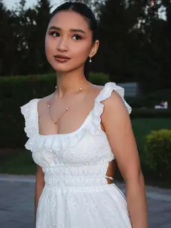 Я слегка худощавая, рост 171 см, вес около 51 кг – так что вешу ровно столько, сколько могу держать весёлый разговор и немного танцевать. Длинные тёмные волосы часто играют со светом, а глаза – русские и казахские – позволяют читать вас без слов. Я азиатка, но выросла в Москве, поэтому чувствую себя здесь как рыба в воде. Татуировок нет, а всё тело гладко выбрито – мне так комфортнее. Люблю спорт, прогулки по паркам и время, проведённое в кафе с хорошей музыкой.