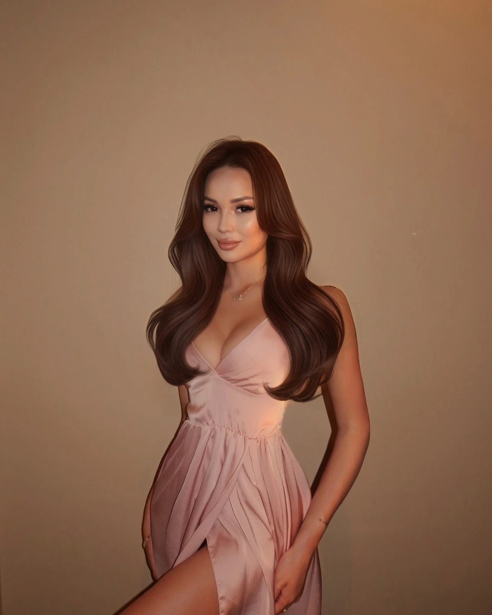 Я худощавая, рост 169 см, вес 50 кг – так что легко помещаюсь в любое место, будь то уютный бар или твоё личное пространство. Длинные рыжие волосы – мой главный атрибут, я часто заплетаю их в лёгкую косичку, а иногда просто развеваю по плечам. Я азиатка, но выросла в России, поэтому говорю свободно на русском, а ещё немного знаю казахский – всегда радуюсь, когда могу удивить парня фразой на его родном языке.